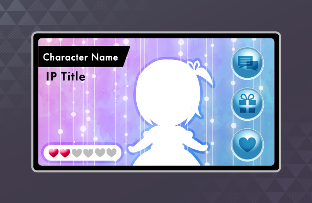 キャラクターとの交流を通じて好感度を高め、好感度に応じてアートやグッズがもらえたり、ゲームで使えるアイテムが貰える、交流そのもの以外にもファンの方に喜んでもらえるような特典を用意します。